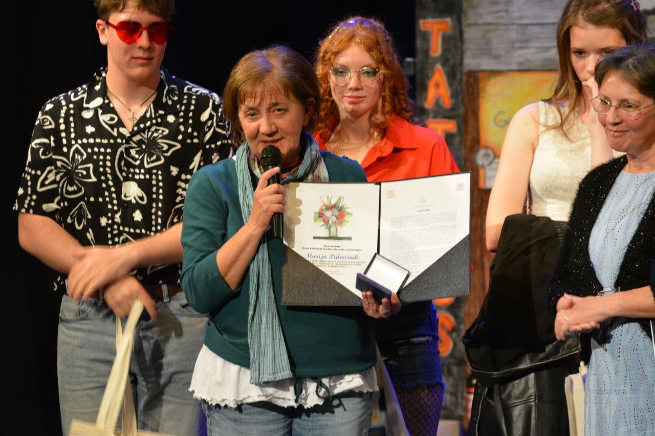 V Gledališču Toneta Čufarja se je včeraj z razglasitvijo rezultatov in podelitvijo priznanj končal 6. festival mladih gledališčnikov Nova gaz, na katerem je publika videla 6 predstav. V okviru festivala je bila aktivna tudi ZKD Slovenije, saj smo podelili svoje najvišje priznanje z zlato medaljo profesorici jeseniške gimnazije g. Mariji Palovšnik za izjemno mentorsko delo, ki ga opravlja na tej šoli in v Farnem društvu Koroška Bela, ki mu predseduje. Priznanje je prejela pred polno dvorano ljudi oz. svojih dijakov, ki so se ji tako lahko neposredno zahvalili za njeno delo.